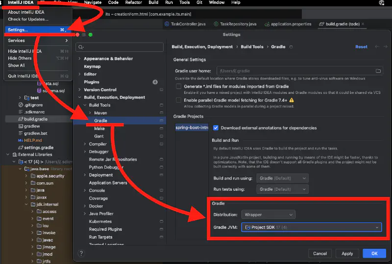 IntelliJ が Gradle を使用してプロジェクトをビルドする際の設定を確認します。